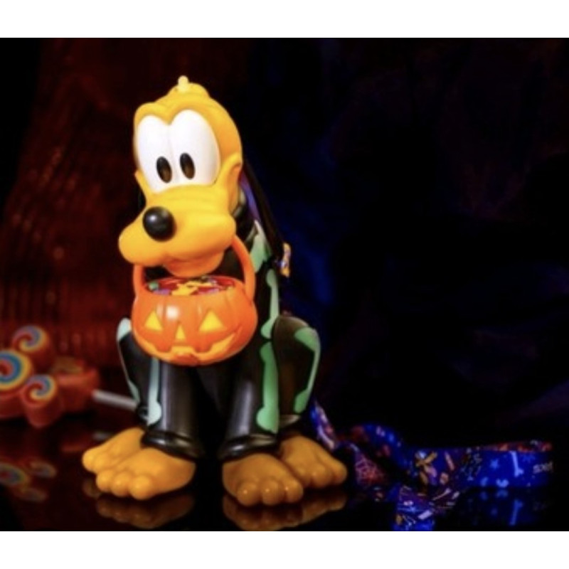 Pluto heeft een lichtgevende pompoen die hij in zijn bek houdt, het skeletontwerp op Pluto's zwarte pak geeft licht in het donker (glow-in-the dark). Hij is ongeveer hoog 27cm