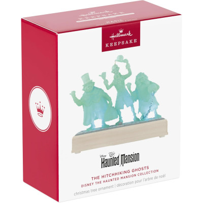De Hitchhiking Ghost ornament is ongeveer H11.5cm, met licht en geluid.