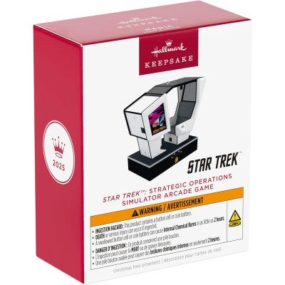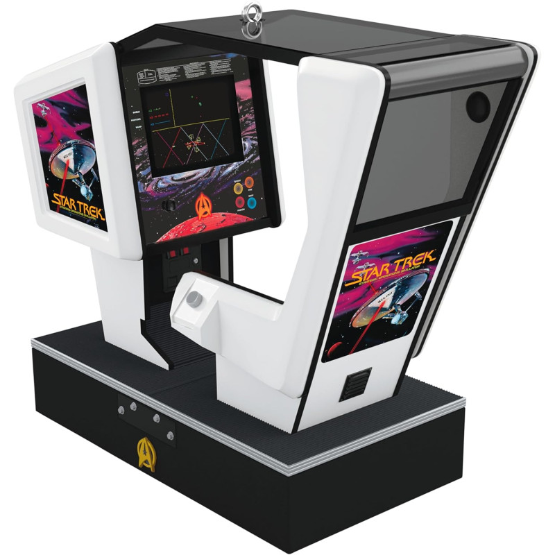 Strategic Operations Simulator Arcade Game ornament is ongeveer H9cm, licht op en speelt geluiden uit het arcadespel uit 1983